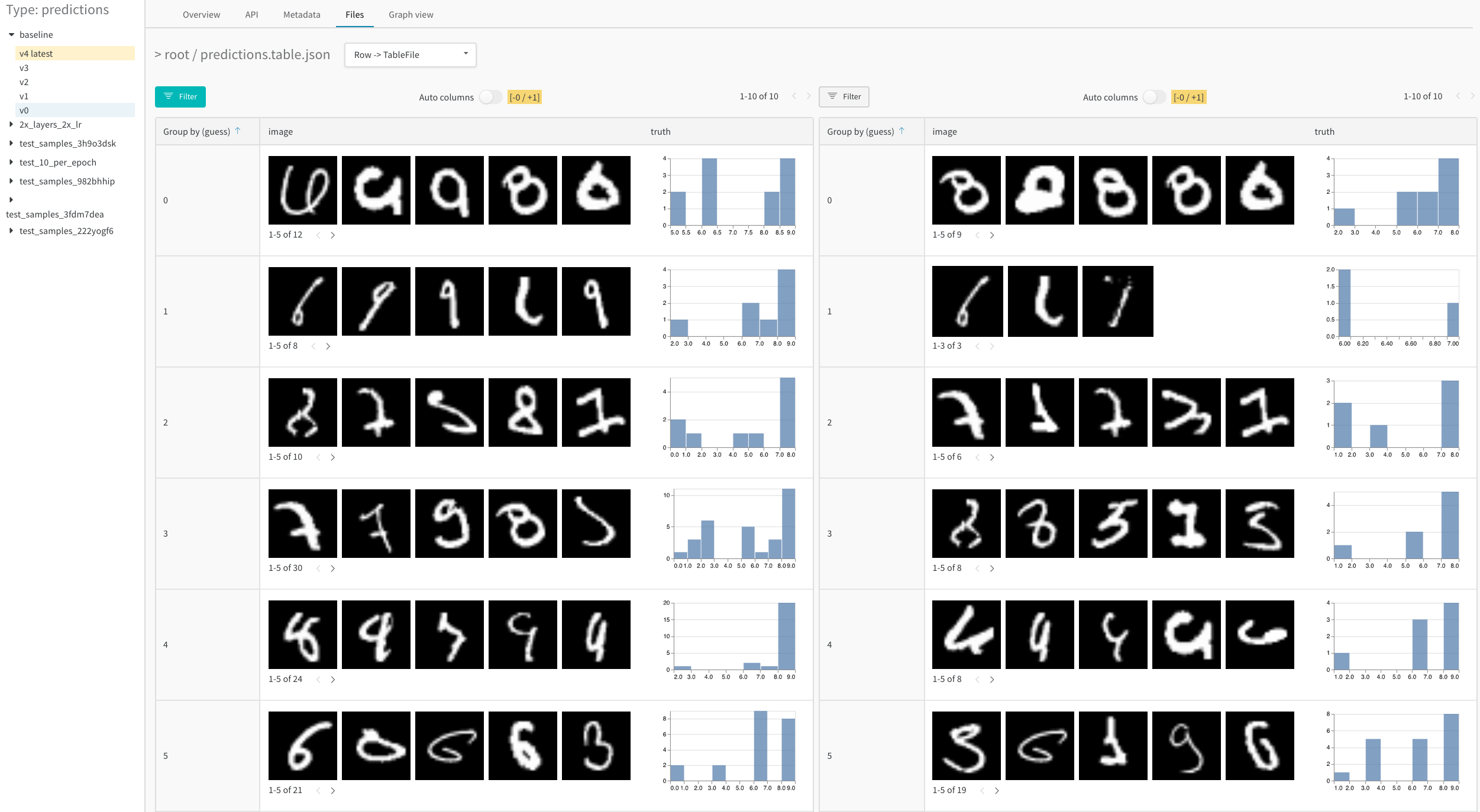 以下では、W&B Tablesを使用した実際のW&Bプロジェクトの例を紹介します。画像分類
